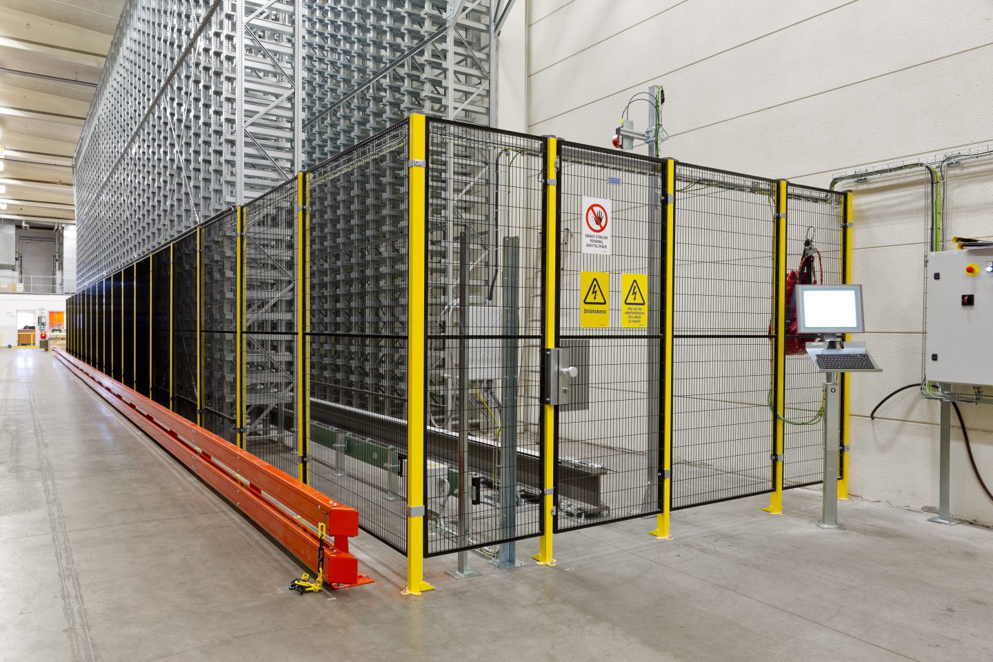 我们的Smart Fix系统搭配夹层平台的防护栏杆和踢脚板,可有效防止人员和货物遭受高空坠物风险。